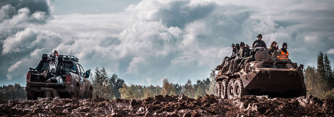 Грохот танковых выстрелов и канонада перестрелок холостыми, с танков постреливают Утесы и ПКТ, бойцы группы имитации стреляют из калашей и ПКМов. Над игроками на бреющем полете пролетает авиация - боевые мотопарапланы, с них сбрасывают гранаты и стреляют...